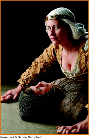 The shameless hussies have long been one of my favourite Vancouver companies. With their mandate to "tell provocative stories about women, to inspire the hand that rocks the cradle to rock the world," they maintain a feminist political edge that's doubly welcome in the de-politicized atmosphere of local theatre today. Initially creating their own plays about tough women from the past like Calamity Jane and Bonnie (of Clyde fame), the company has recently produced works by other playwrights--Daniel MacIvor's Marion Bridge, Moira Buffini's Loveplay--that seem chosen more on the basis of their good female roles than their politics. With Buffini's Silence, the Canadian premiere of a play originally commissioned by Britain's National Theatre, the hussies return to "herstory," the tale of a long-forgotten British Queen from 1000 AD. To help counter the Viking threat, Ymma (Daune Campbell) has been sent, against her will, from Normandy to the England of King Ethelred (Anthony F. Ingram) to make a marriage of political convenience with Lord Silence of Cumbria (Renée Iaci). Ymma's unhappiness deepens when she discovers that Ethelred is a weepy wimp and Silence a slight boy of 14. But all is not as it seems. Silence turns out in fact to be a girl. And after a baroque series of sexual developments that also involve Roger the jolly priest (Malcolm Scott), Ymma's servant Agnes (Deb Pickman) and Ethelred's soldier Eadric (Ian Butcher), Ymma ends up with both Ethelred and Silence, as well as some autonomy and power. Initially, Silence seems like a gentle, gender-bending feminist romp in the style of Ann-Marie McDonald's Goodnight Desdemona (Good Morning Juliet). At the same time the cardboardish castle set, the arch dialogue ("What a dump!" says Ymma when she first arrives in the kingdom), and the somewhat cartoonish acting style all evoke the ambience of Theatre for Young Audiences. But the play's dark notes develop into a counterpoint of metaphysics and murder. Ethelred becomes a monstrous Caligula-like tyrant, instituting a holocaust, torturing a priestess to death. The shifts in tone, as Buffini tries to maintain the sex farce and holocaust drama simultaneously, are jarring to say the least. Director Michael Schaldemose exacerbates the serious script problems by failing to find a style to accommodate Buffini's juxtaposition of the profound and silly. And some sloppy, unfocused blocking makes it even harder for the audience to digest the play's mixed messages. Performances are uneven too, with the men, ironically, coming off better than the women. Butcher's brooding Eadric and Scott's sweetly comic priest take home the acting honours along with Pickman's straight-talking servant girl. Ingram handles Ethelred's transition from potsy to Nazi about as well as could be. But I found Campbell's Ymma too obsessively morose to care about. And no real chemistry develops between her and Iaci's Silence, who remains lightweight right to the end. A feminist play built around a hero(ine) named Silence would be a tough nut to crack under any circumstances. Jerry Wasserman